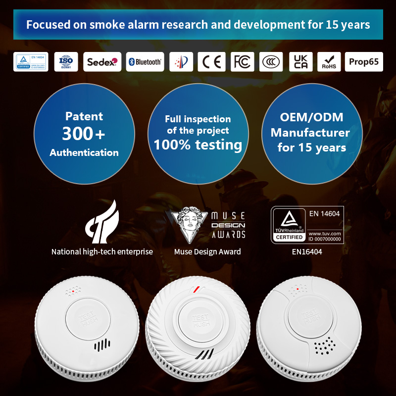 Somos uma empresa ODM líder mundial em alarmes inteligentes, com foco no setor de alarmes de segurança há 16 anos. Nossos serviços abrangem mais de 30 países e regiões, e cooperamos com mais de 3.000 clientes de marcas globais. Investimos fortemente em inovação tecnológica e possuímos mais de 60 patentes. Além disso, priorizamos a qualidade e obtivemos as certificações TUV EN14604, EN50291 e a certificação obrigatória CCC.