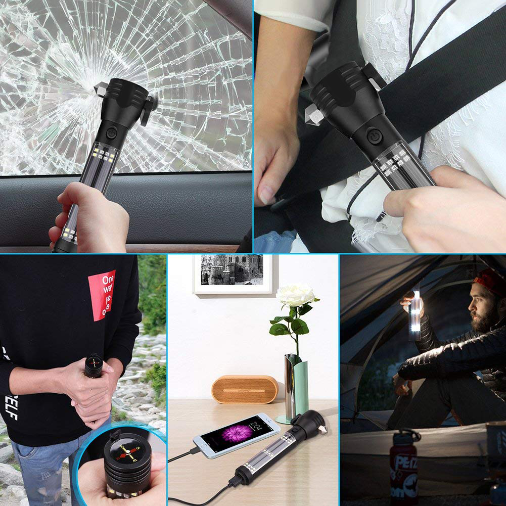 Multifunction Mini Car Emergency Rescue Hammer Tool Safety Escape Hammer Window Glass Breaker Pouch Seat Belt Cutter solar power rechargeable LED flashlight power bank compass – Ariza Detail: