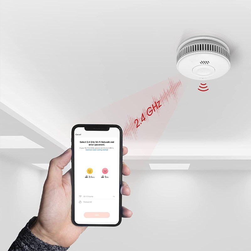 The smoke alarm can be installed on the ceiling .If it is to be installed on sloping or diamond-shaped roofs, the tilt Angle should not be greater than 45° and a distance of 50cm is preferable.