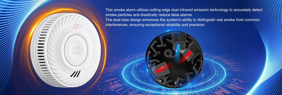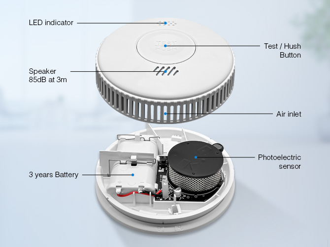 This standalone smoke alarm is designed to detect smoke particles from fires and provide early warning through an 85dB audible alarm. It operates on a replaceable battery (typically CR123A or AA-type) with an estimated lifespan of 3 years. The unit features a compact, lightweight design, easy installation (no wiring required), and is compliant with EN14604 fire safety standards. Suitable for residential use, including homes, apartments, and small commercial properties.