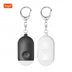 The alarm produces a 130dB siren and is activated by a double-press on the main button. It can be turned off by long-pressing the same button.