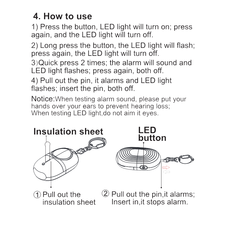 130dB Personal Alarm Pull Activated LED Key Chain Clip Backpack Purse Siren Sound Self Defense Personal Alarm – Ariza , The product will supply to all over the world, such as: Libya