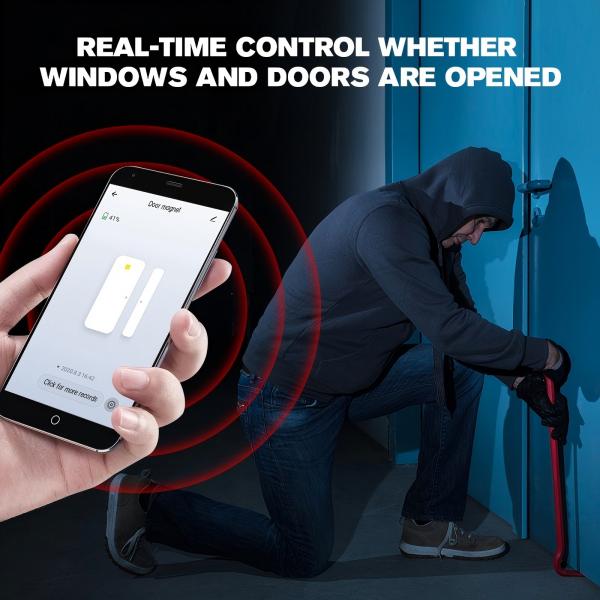 Yes, it connects to your smartphone via app (e.g., Tuya Smart), and sends real-time alerts when a door or window is opened.