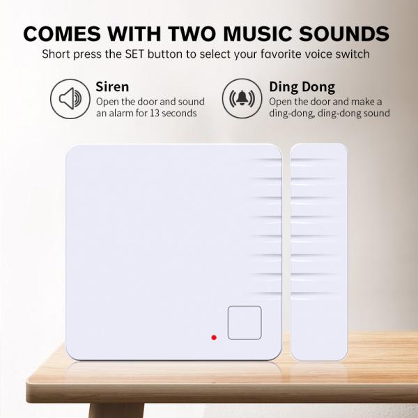Yes, you can choose between two sound modes: a 13-second siren or a ding-dong chime. Simply short-press the SET button to switch.