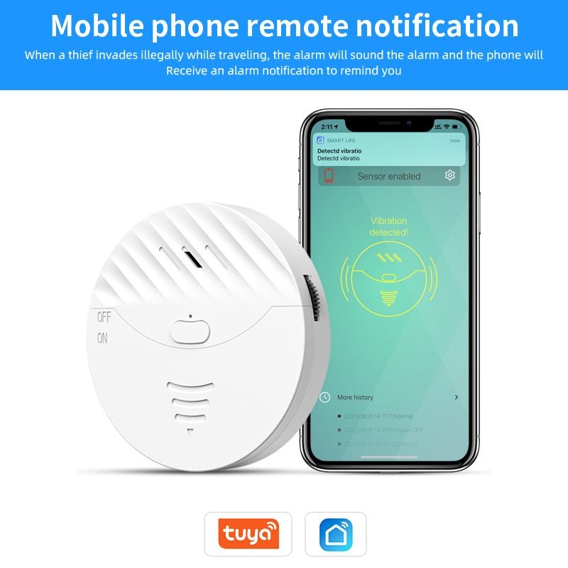 Connect the Window Alarm to WiFi, it will instantly send you an alert through the Tuya smart/Smart life App when detect slight vibration of doors and windows even you're not at home.With the smart speakers such as Amazon Alexa and Google Assistant, voice control can be achieved.
