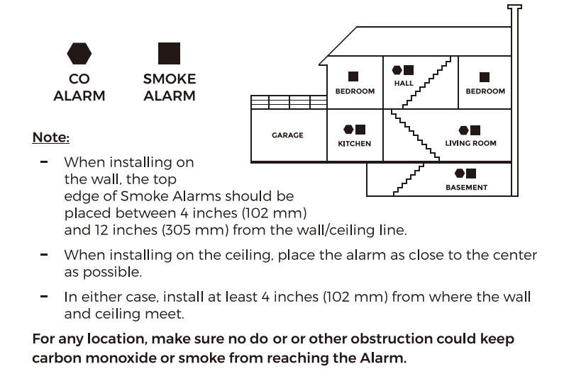 • In case of simultaneous alarms, the device will alternate between CO and smoke alarm modes every second.