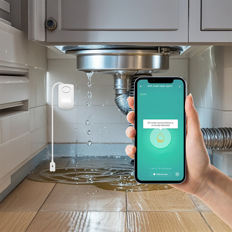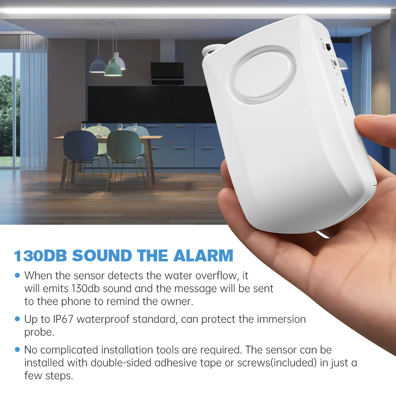 This wifi enabled water leak detector combines advanced resistive sensor technology with smart connectivity, providing reliable protection against water damage. It features a loud 130dB alarm for immediate local alerts and real-time notifications via the Tuya app, ensuring you’re always informed. Powered by a 9V battery with a 1 year standby time, it supports 802.11b/g/n WiFi and operates on a 2.4GHz network. Compact and easy to install, it’s ideal for homes, kitchen,bathroom. Stay connected and secure with this smart water leak detection solution!